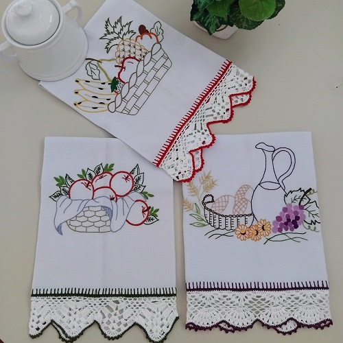 Nossa especialidade é o crochê e o bordado, tudo feito à mão.