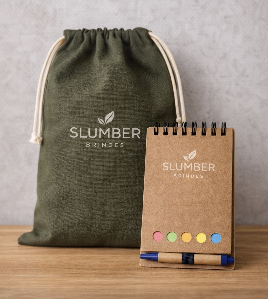 A Slumber Brindes desenvolve brindes personalizados com foco em qualidade, design funcional e produção cuidadosa. Trabalhamos com algodão cru, materiais sustentáveis e outras soluções criativas para atender empresas, eventos e ações institucionais. Nosso objetivo é criar produtos úteis, bem acabados e alinhados à identidade de cada marca.